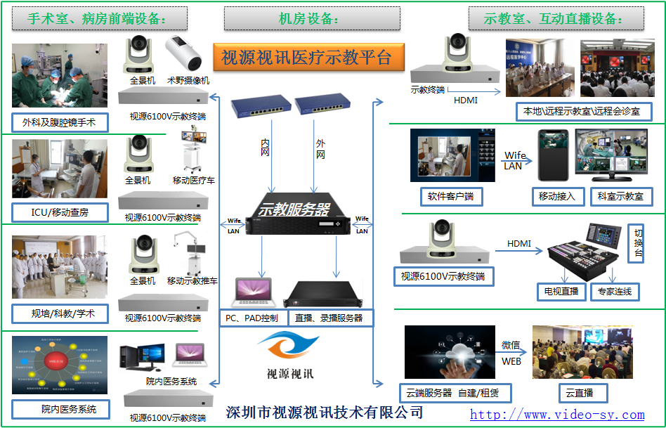 手術(shù)示教終端SY-7100V、術(shù)野攝像機(jī)SY-HD900、全景攝像機(jī)SY-HD770、移動(dòng)手術(shù)示教推車、視源示教管理平臺(tái)、錄播服務(wù)器SY-S980、電視墻服務(wù)器SY-S300.....